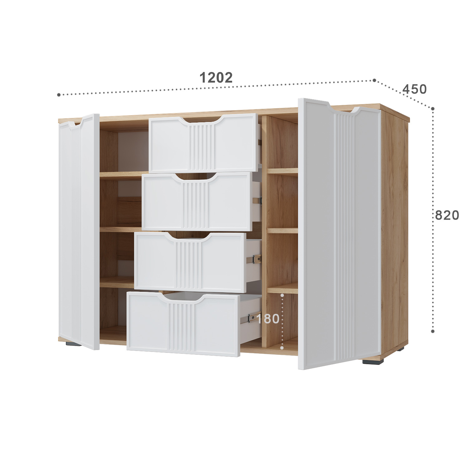 Комод Эмилия ЭЛ-21 изготовлен из ЛДСП 16 мм, фасады МДФ. Свес крышки в 30 мм обеспечит прилегание к стене с любым плинтусом. Фурнитура: телескопические направляющие полного выдвижения без доводчиков. Важная информация. Мебель доставляется в разобранном виде, в упаковках.