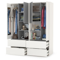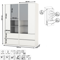 Шкаф оборудован горизонтальной штангой для одежды на плечиках за дверкой с одной стороны. С другой три полки, верхние две за распашной дверкой. В нижней части шкаф располагат двумя выдвижными ящиками на шариковых направляющих полного выдвижения обеспечивают длительную и тихую эксплуатацию. На внутренней стороне дверки отделения с штангой расположено зеркало. Шкаф для одежды Торонто 13.333 собирается на любую сторону, что позволяет расширить возможности по расстановке мебели. Распашные двери шкафа на четырёхшарнирных петлях без доводчиков. Отсутствие лицевой фурнитуры и открывание фасадов за край - не только стилевое, но функциональное решение. Так мебель занимает меньше места и дает возможность проходить вплотную с фасадом без риска зацепиться за ручку или травмироваться. Базовый белый цвет, сочетаясь с акцентным серым, создаёт нейтральную основу интерьера, чтобы подчеркнуть личные вещи и аксессуары. Корпуса и фасады мебели изготовлены из экологически чистой ламинированной ДСП 16 мм, торцы окромлены ПХВ плёнкой 0,4 мм. В производстве молодёжной Торонто использованы качественные материалы и фурнитура - можно разрабатывать проект на весь период обучения. Поставляются два шкафа для одежды для молодёжной Торонто в разобранном виде, надёжно упакованной в гофрокартон, с приложенной подробной инструкцией по сборке.