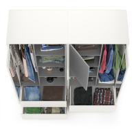 Вместимая система хранения конструктивно состоит из двух шкафов для одежды объединенных в единый блок.