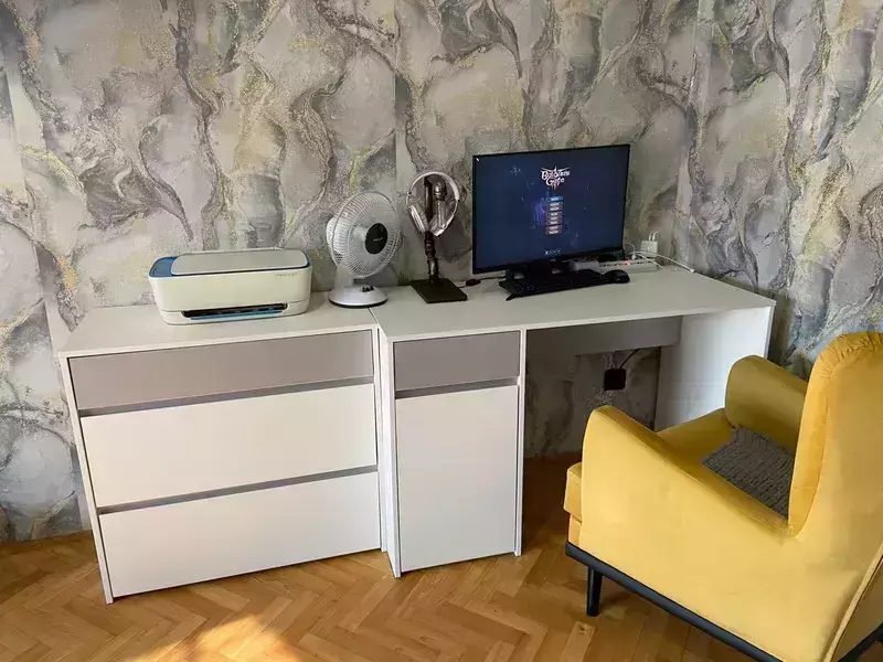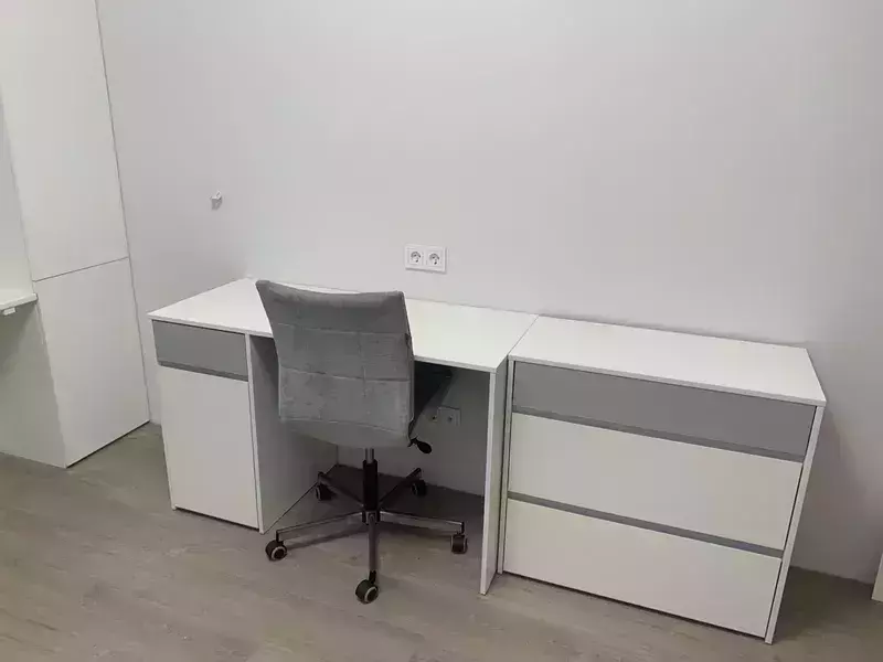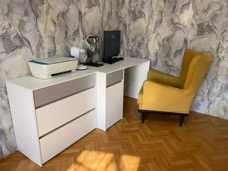 Конструктивно стол включает всестительную столешницу и тумбу под ней. Тумба стола имеет удобное распашное отделение с полкой внутри и выдвижным ящиком над ним на шариковых направляющих полного выдвижения. Универсальная сборка - сторону расположения тумбы Вы определяете сами. Комод состоит из трех выдвижных ящиков на шариковых направляющих полного выдвижения, позволит хранить вещи в полном порядке. Отсутствие лицевой фурнитуры и открывание фасадов за край - не только стилевое, но функциональное решение. Так мебель занимает меньше места и дает возможность проходить вплотную с фасадом без риска зацепиться за ручку или травмироваться. Базовый белый цвет, сочетаясь с акцентным серым, создаёт нейтральную основу интерьера, чтобы подчеркнуть личные вещи и аксессуары. Корпуса и фасады мебели изготовлены из экологически чистой ламинированной ДСП 16 мм, торцы окромлены ПХВ плёнкой 0,4 мм. В производстве молодёжной Торонто использованы качественные материалы и фурнитура - можно разрабатывать проект на весь период обучения. Поставляется компьютерный стол Торонто с комодом в разобранном виде, надёжно упакованной в гофрокартон, с приложенной подробной инструкцией по сборке.