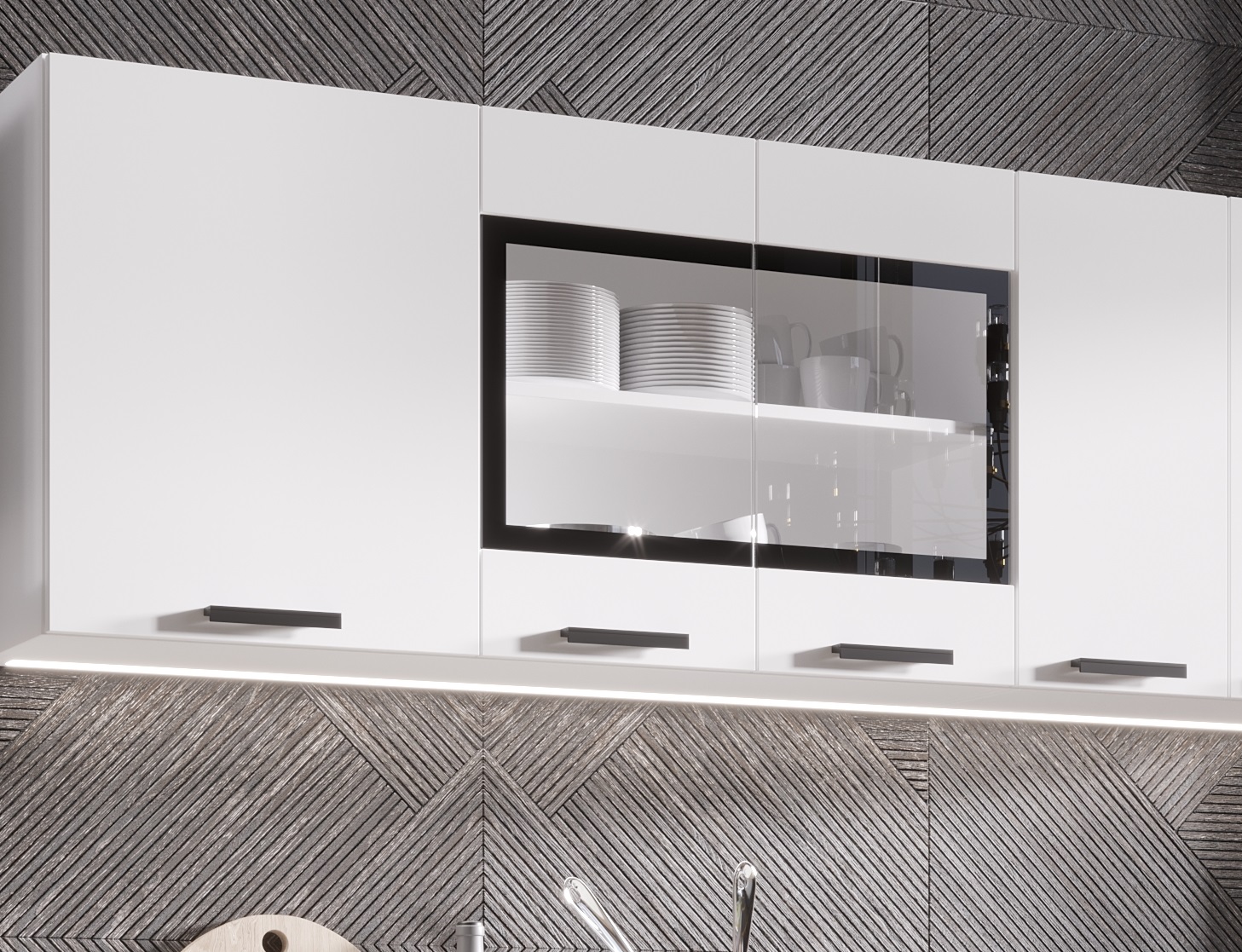 два верхних шкафа: первый шкаф - общая ширина 1200мм (500мм , 700мм со стеклом). Внимание! Это единый элемент, разъединить шкафы невозможно! Второй шкаф: на 600мм. Высота 626мм. Глубина 270 мм.