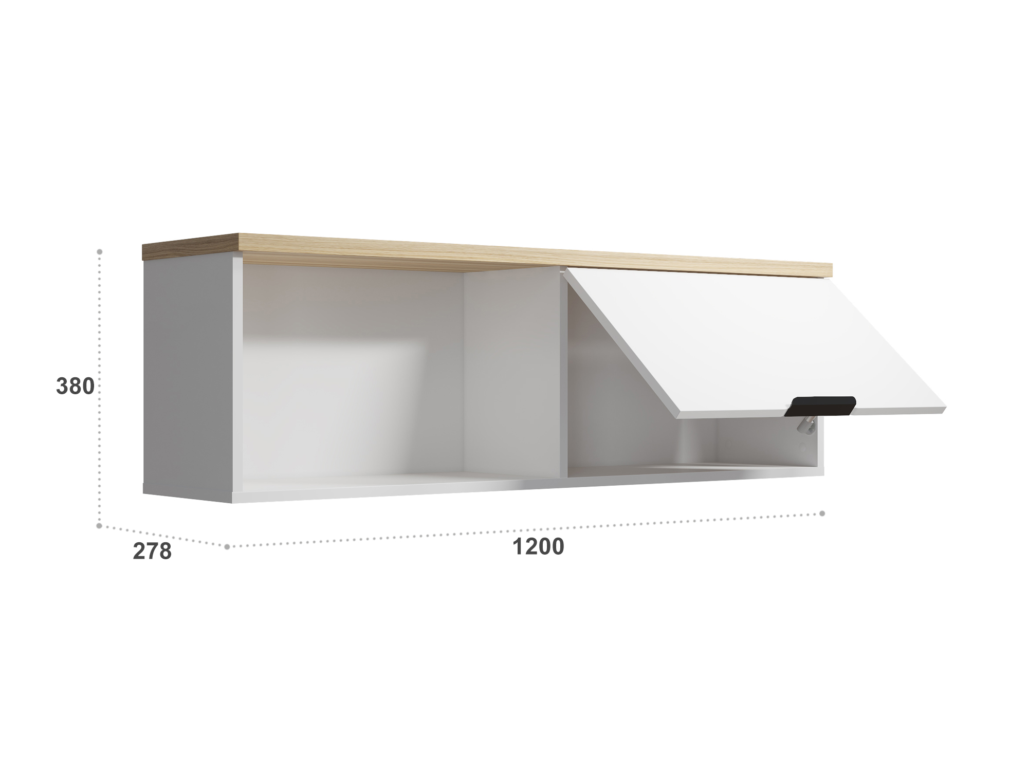 Навесная полка Скайлайт СЛ-41 станет функциональным решением, где можно хранить книги, материалы для творчества и канцелярию. Полка имеет одну открытую нишу для хранения и один ящик с откидывающейся вверх створкой с газовым упоком. Полка станет отличным дополнением к письменному столу СЛ-20.