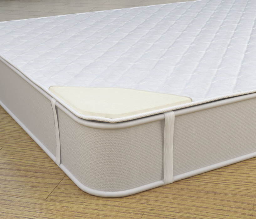 Чехол: жаккард хлопковый, стеганный на синтепоне, пенополиуретан, 4 фиксирующие резинки по углам.