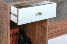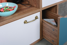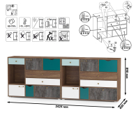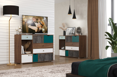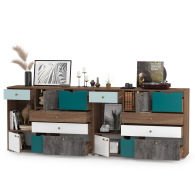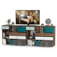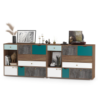 Две тумбы-комода Вайс - креативный подход к системе хранения. Эксклюзивные две тумбы-комода Вайс необычены всем - стильным калейдоскопом цветов, оригинальным дизайном и комбинацией элементов. Представляет собой два комода Вайс 10.104, которые можно разместить как единым блоком. так и по отдельности. Конструкция комода Вайс 10.104 включает два закрытых распашной дверкой отделения, открытую нишу и шесть выдвижных ящиков. Удобное расположение составляющих комод деталей, их различная форма и вместимость, помогают организовать идеальный порядок хранения. Пропорции тумб-комодов Вайс расчитаны для помещения любого размера - высокие, но узкие (всего 40см.) а также ещё и практичная подставка. В гостиной и детской - комод заменит тумбу под телевизор, в спальне и прихожей - крышка комода послужит отличным подзеркальником. Интересный микс цветов, занятная форма ручек эстетично украшают две тумбы-комоды Вайс, дают ему шансы занять достойное место в интерьере. Корпус и фасады выполнены из экологически чистой ламинированной ДСП 16 мм., торцы окромлены ПХВ плёнкой. Распашные двери на четырёхшарнирных петлях без доводчиков, выдвижные ящики - фолдинги на шариковых направляющих. Две тумбы-комода Вайс поставляются в разобранном виде, с комплектом фурнитуры, упакованный в 4-х слойный гофрокартон. Сертификация на соответствие требованиям ГОСТ и санитарно-эпидемиологическим нормам подтверждена документально. Вы можете купить две тумбы-комода Вайс со скидкой при заказе через сайт в нашем магазине. Изображения двух тумб-комодов Вайс Вы можете найти выше в начале страницы. Комод Вайс 10.104 - стиль и практичность!