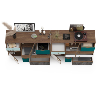 Выполнен в цвете: морское дерево винтаж/камень тёмный/бензин/мята/белый премиум.