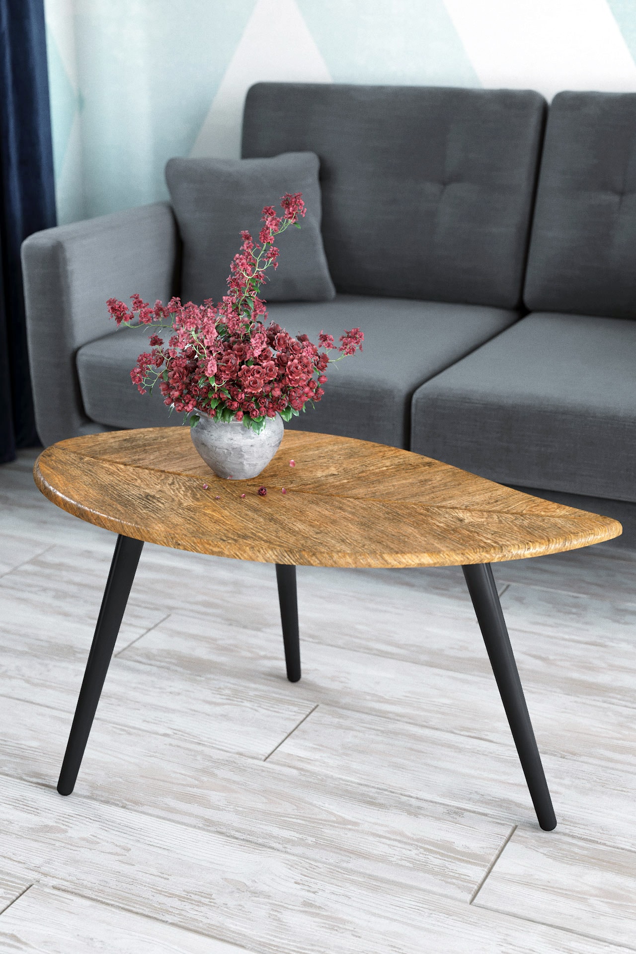 Журнальный стол вносит в интерьер гостиной комфорт и подчеркивает его эстетику. Зачастую подобный столик бывает главным столом в доме. Он помогает хозяевам встречать гостей, работать. Особенностью дизайнерского решения журнального стола "Берли" является оригинальное сочетание фрезеровки столешницы в форме листа дерева и текстуры декоративного покрытия. Опоры выполнены из дерева. Столик имеет компактные размеры: длина 900 мм, ширина 500 мм, высота 466 мм. Продукция поставляется в разобранном виде, упакованная в гофрокартон. В комплект входит вся необходимая фурнитура и удобная инструкция для сборки. Максимальная нагрузка до 30 кг.