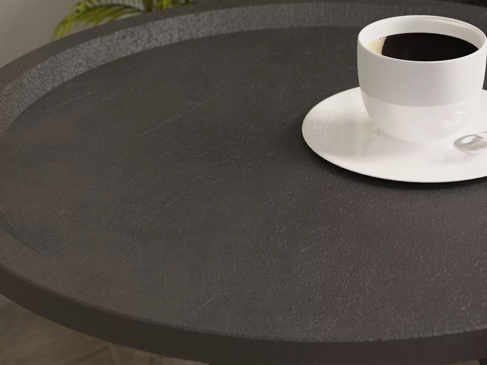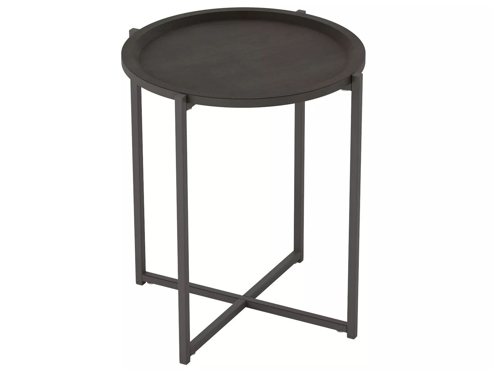 Круглая, слегка вогнутая столешница с оригинальным бортиком изготовлена из МДФ в нескольких цветовых решениях, лаконичный контраст которым придает однотонный каркас.