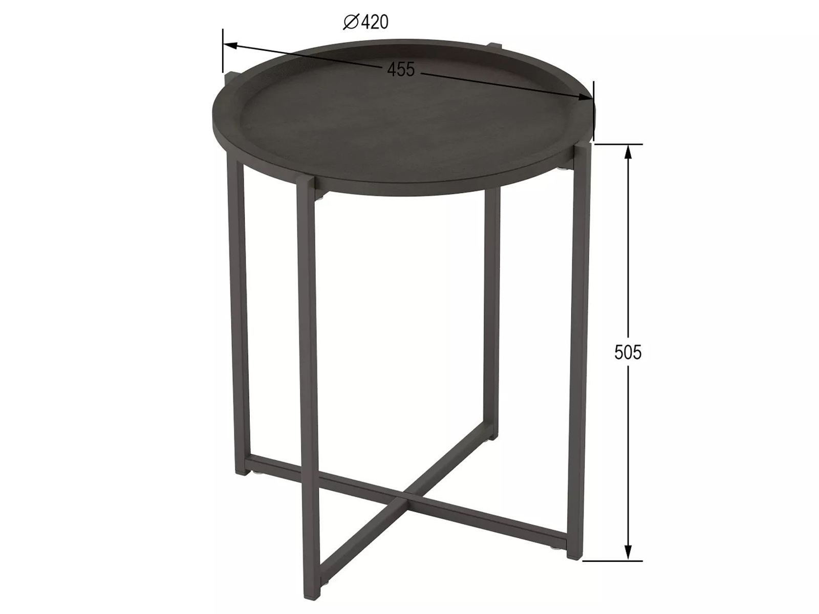Габаритные размеры стола: диаметр столешницы 42 см, высота 50,5 см.