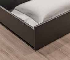 Размеры ящика составляют 221 мм в высоту, 980 мм в ширину и 616 мм в глубину. Он специально разработан для этих кроватей и предоставляет дополнительное место для хранения постельных принадлежностей и других предметов, помогая поддерживать порядок и упорядоченность в спальне.