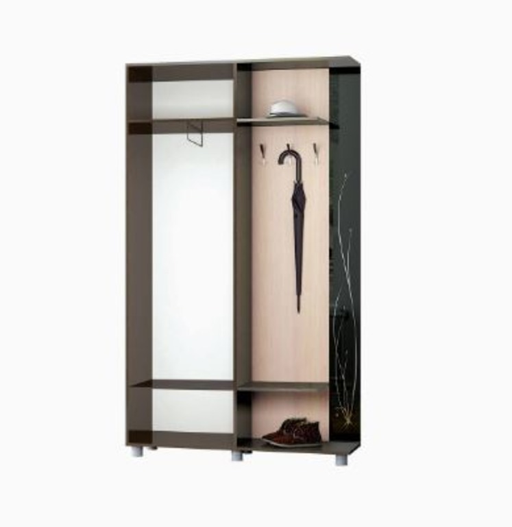 — Вместительный шкаф с металлической выдвижной штангой, полка для мелочей и открытая секция с крючками под одежду