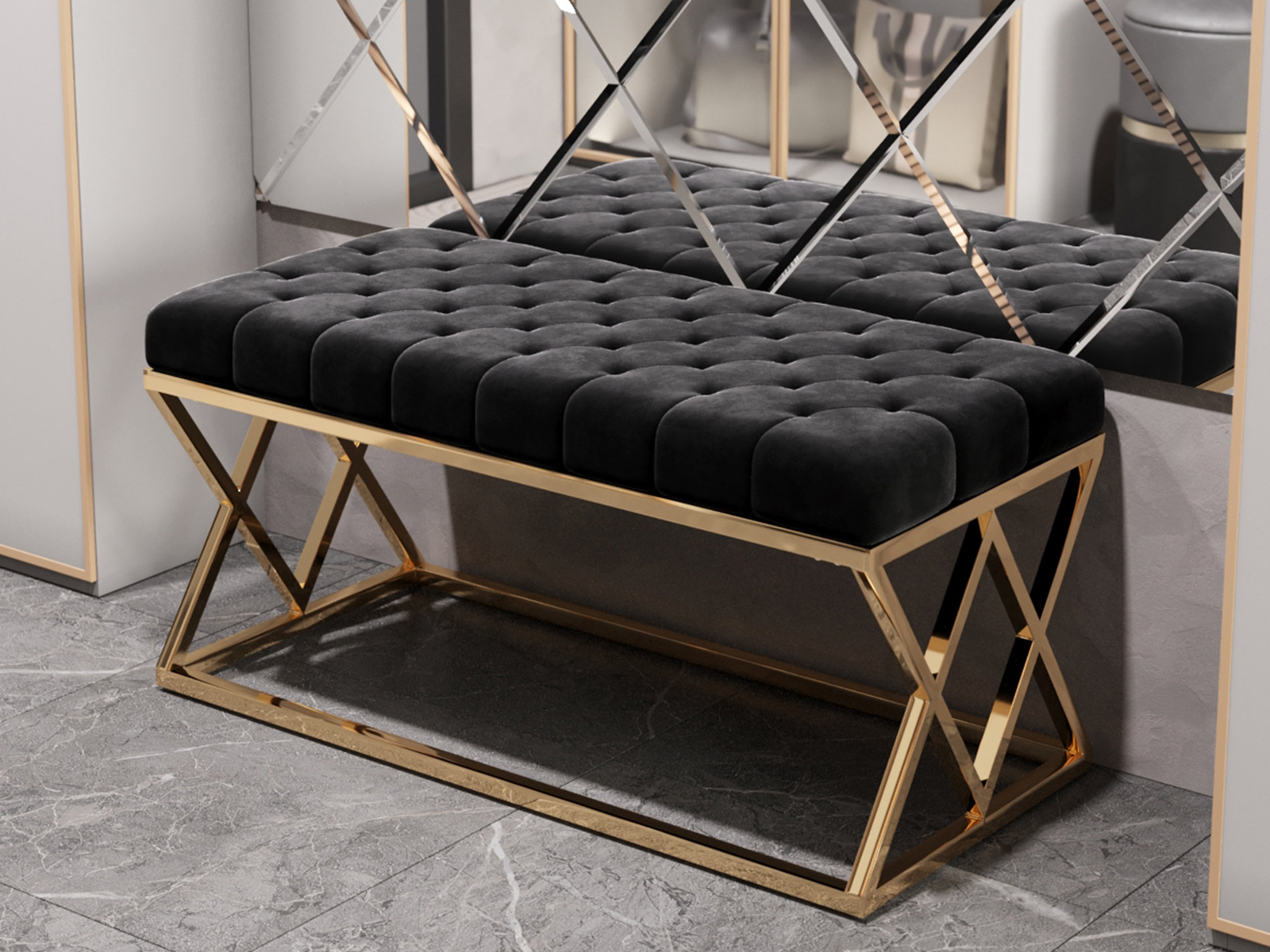Банкетка-скамейка STOOL GROUP ИНСИГНИЯ (Сталь золото) (Вельвет Черный)