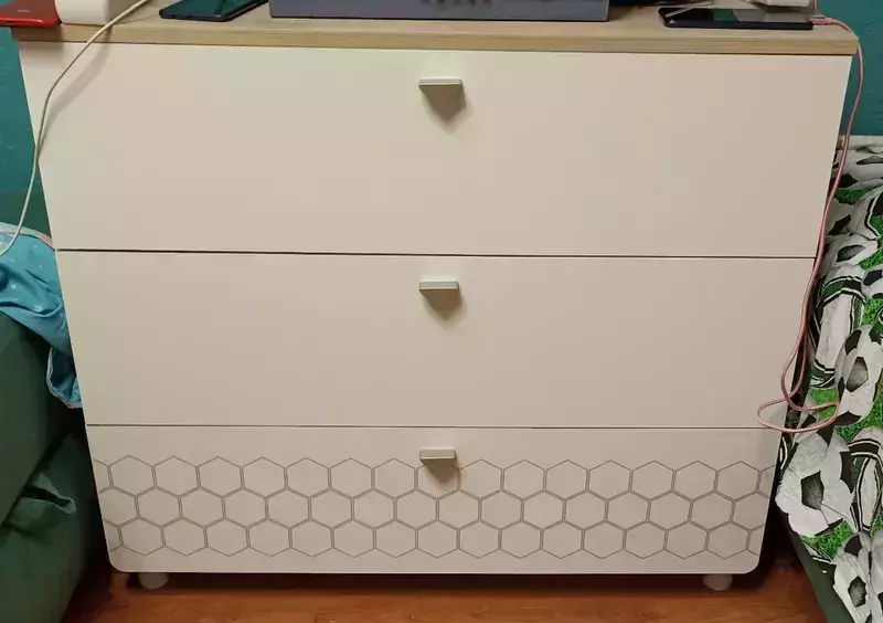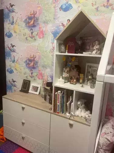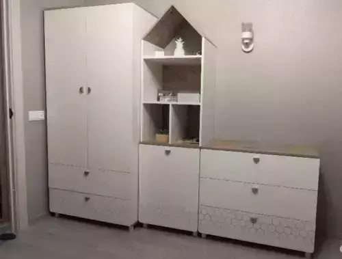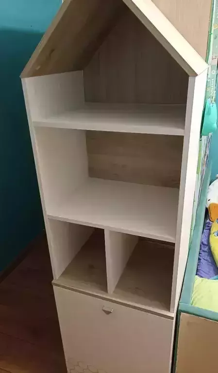 Стеллаж конструктивно представляет 5 ярусов, нижние два за распашной дверкой. Верхняя часть стеллажа выполнена в виде крыши домика, что несомненно будет радовать малыша. Дверь при сборке можно установить на любую сторону. Cистема хранения комода предствлена тремя выдвижными ящиками на шариковых направляющих полного выдвижения. На фасаде скандинавские геометрические мотивы универсального цветового решения делают эту мебель подходящей и девочкам, и мальчикам. Опоры - регулируемые, что позволяет легко компенсировать неровности пола. Изготовлена мебель из экологически чистой ламинированной ДСП 16 мм, торцы окромлены ПХВ плёнкой. Толстая кромка — все выступающие части кровати закрыты прочной и безопасной кромкой толщиной 2 мм. Лицевая фурнитура - минималистичные пластиковые ручки. В производстве использованы качественные материалы и фурнитура - можно разрабатывать проект на весь период обучения. Выдвижные ящики на шариковых направляющих полного выдвижения обеспечивают длительную и тихую эксплуатацию. Распашные двери на четырёхшарнирных петлях без доводчиков. Поставляется в разобранном виде в надёжной упаковке, с комплектом сборочной фурнитуры и инструкцией по сборке.