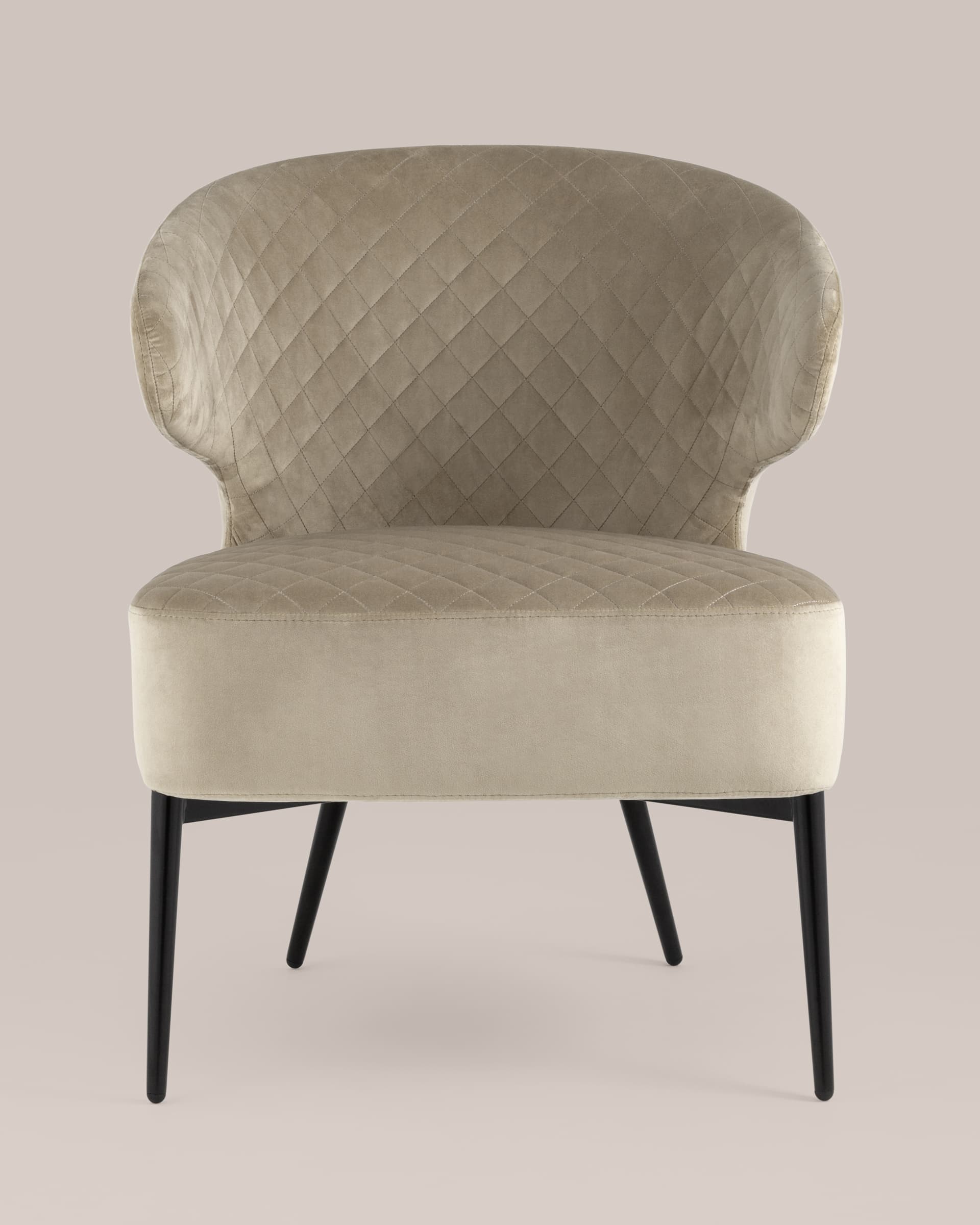 Современное комфортное кресло для отдыха и релакса. Обивка выполнена из велюра - износостойкий и простой в уходе материал. Внутренняя сторона обивки украшена ромбовидной строчкой. Сочетание мягкого сиденья шириной 61 см.