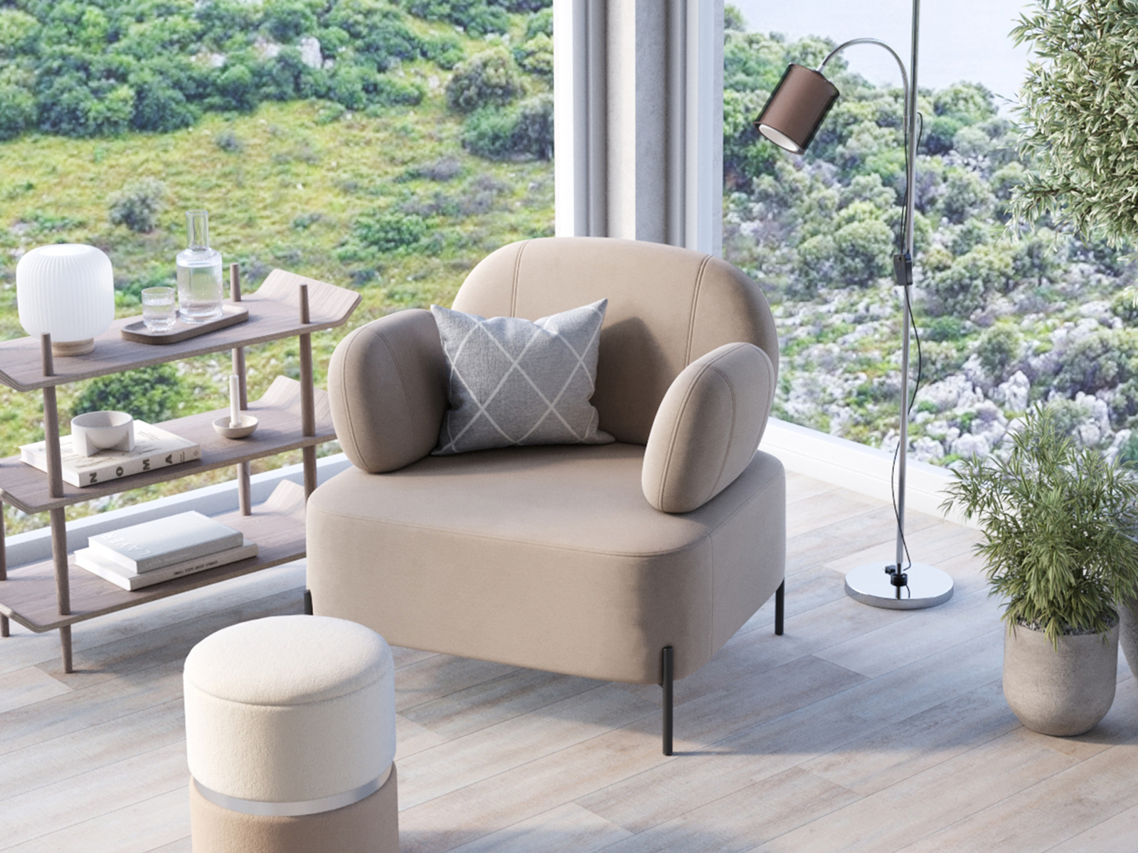 Отзывы о Столплит Кресло STOOL GROUP Кэнди с подлокотниками Велюр Светло-серый