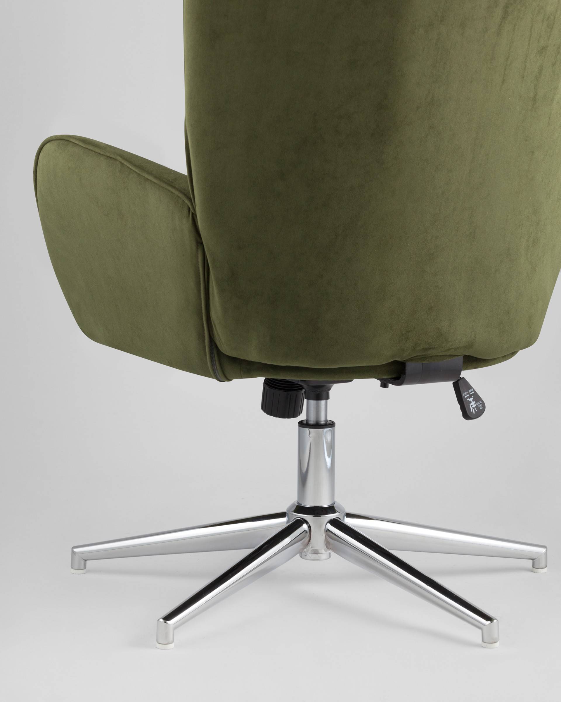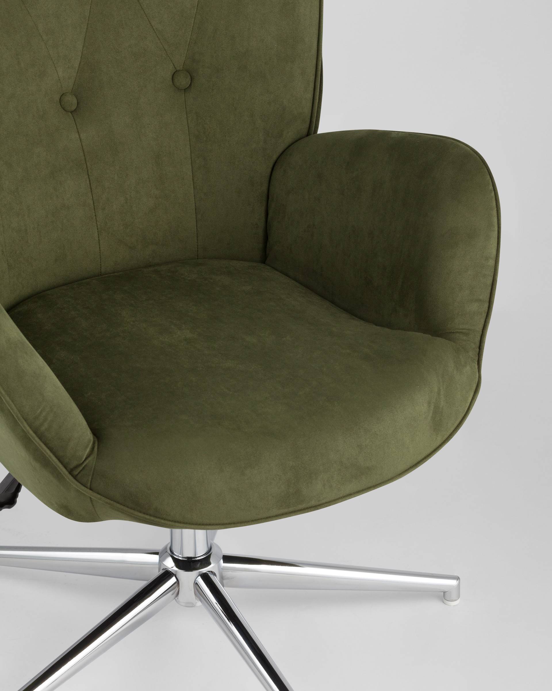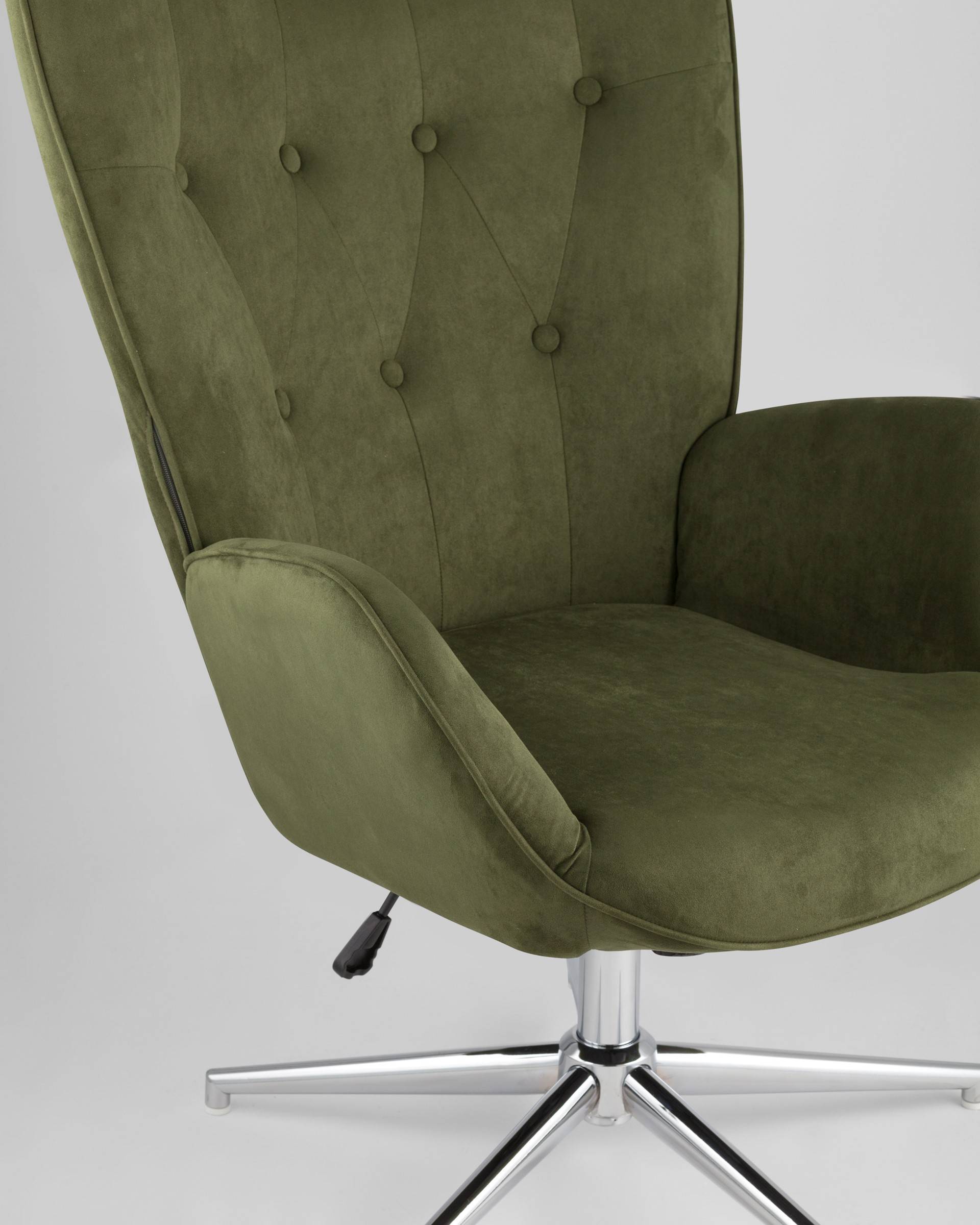 Мягкое сиденье с высокой поддерживающей спинкой анатомической формы подарит комфорт и уют. В качестве обивки используется прочная износостойкая замша с точечным декором. Металлическая ножка регулируется по высоте и обеспечивает хорошую устойчивость. Удобные подлокотники добавят комфорта.