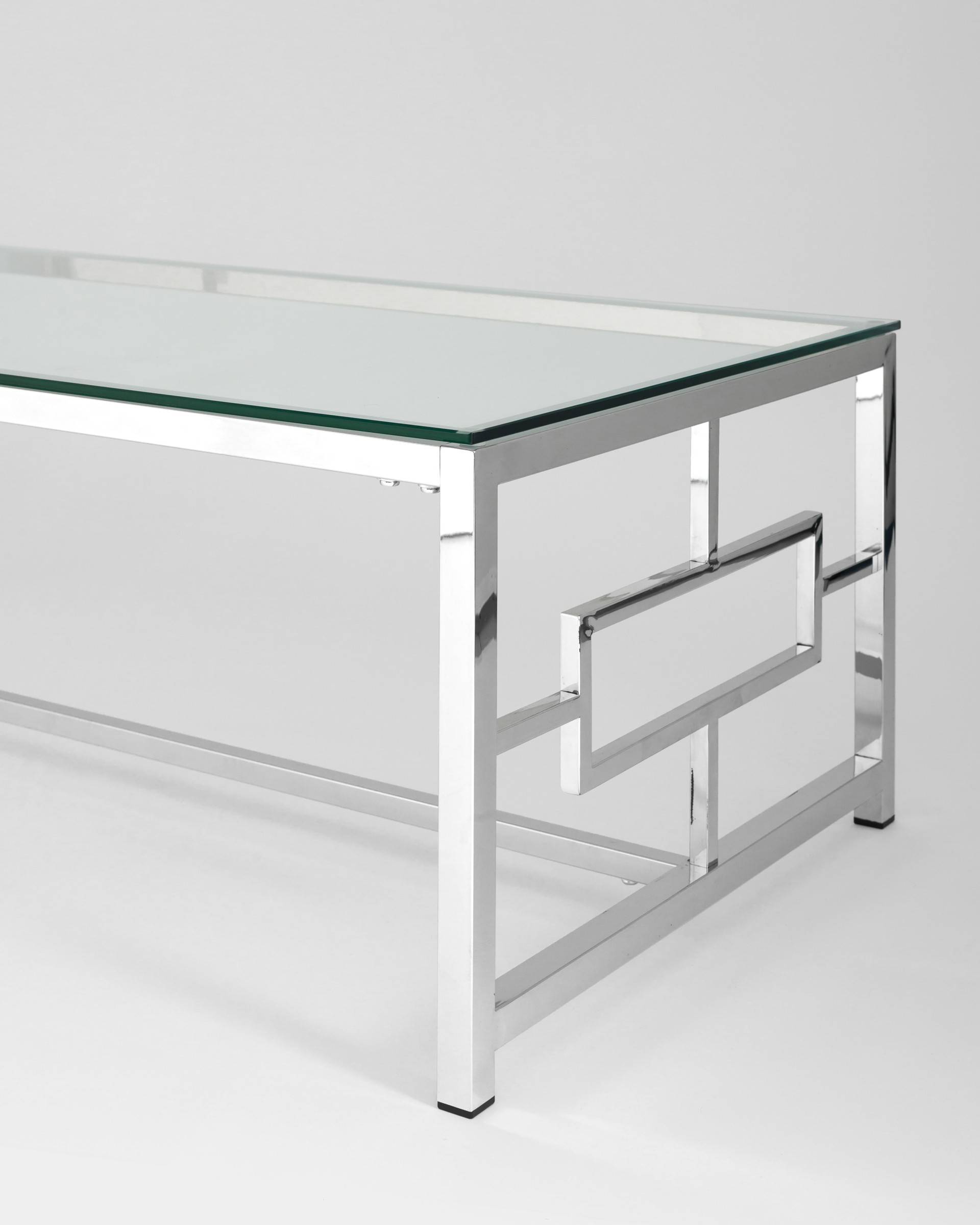 Журнальный стол БРУКЛИН 120х60 (Прозрачное стекло/Сталь серебро) Код I0000344542
