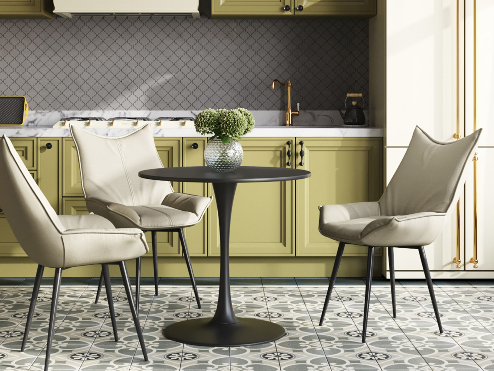 Концептуальная модель с плавными очертаниями украсит кухню, столовую, дачную террасу или современное кафе.Стильная ножка изготовлена из металла, диаметр столешницы 80 см.
