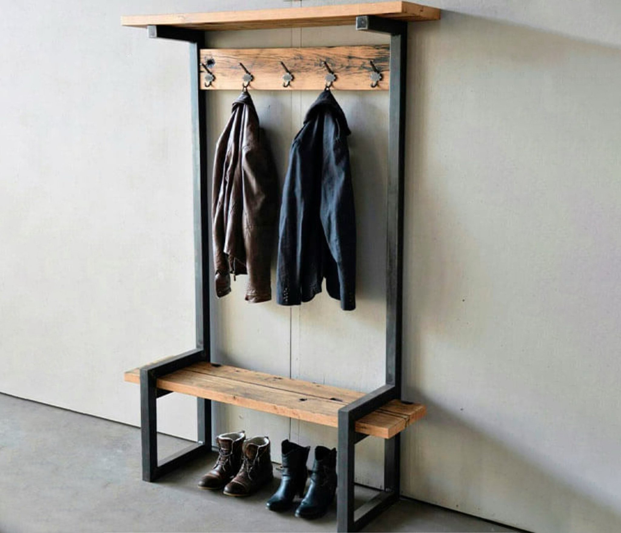 Очень стильная прихожая. Металл и массив смотрятся здорово.