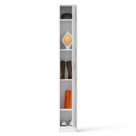Классический узкий пенал, за распашной дверью которого расположены 4 полки. Сторону открывания двери Вы определяете при сборке, что расширяет возможности удобной меблировки прихожей. Декоративная фрезеровка Ромб служит отличным дополнением к общему светлому тону фасада. Дверь закреплена на четырёхшарнирных петлях. Фасад выполнен из МДФ односторонней белой 16 мм. и покрыта плёнкой ПВХ 0,3 мм. белое дерево. Корпус выполнен из ламинированной ДСП 16 мм., которая имеет гигиенический сертификат Е1 и относится к самой безопасной группе ДСП. Торцы деталей облицованы кромкой ПВХ 2 мм. и 0,4 мм., что улучшает эстетический вид и продлевает срок службы обувнице. На опорах мебели используются пластиковые подпятники, сохраняющие Ваше напольное покрытие от повреждений. Ручка в виде скобы выполнены из металла в цвете бронза. Поставляется пенал П-6 в разобранном виде в надёжной упаковке, с комплектом сборочной фурнитуры и инструкцией по сборке. Изображения пенала П-6 Вы можете найти выше в начале страницы.