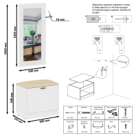 Комплектация состоит из обувницы и навесного зеркала в раме. Компактная маленькая обувница без полок за откидной дверкой. За откидной дверцей достаточно места для нескольких пар обуви. Обувница оборудована мягким сиденьем - ее можно использовать в качестве банкетки с комфортом обуваясь перед выходом. Для фиксации откидного фасада используется газлифт мебельный. Максимальная нагрузка составляет 5 кг. Ручка в виде скобы выполнена из металла в цвете бронза. Классическое прямоугольное зеркало в раме из МДФ. Крепления зеркала к стене в комплектацию не входит. Фасад и рама выполнены из МДФ односторонней белой 16 мм. и покрыта плёнкой ПВХ 0,3 мм. белое дерево. Декоративная фрезеровка Прованс служит отличным дополнением к общему светлому тону фасада. Корпус выполнен из ламинированной ДСП 16 мм., которая имеет гигиенический сертификат Е1 и относится к самой безопасной группе ДСП. Торцы деталей облицованы кромкой ПВХ 2 мм. и 0,4 мм., что улучшает эстетический вид и продлевает срок службы обувнице. На опорах мебели используются пластиковые подпятники, сохраняющие Ваше напольное покрытие от повреждений. Поставляется обувница с мягким сиденьем с зеркалом П-6 в разобранном виде в надёжной упаковке, с комплектом сборочной фурнитуры и инструкцией по сборке. Изображения обувницы с мягким сиденьем с зеркалом П-6 Вы можете найти выше в начале страницы.