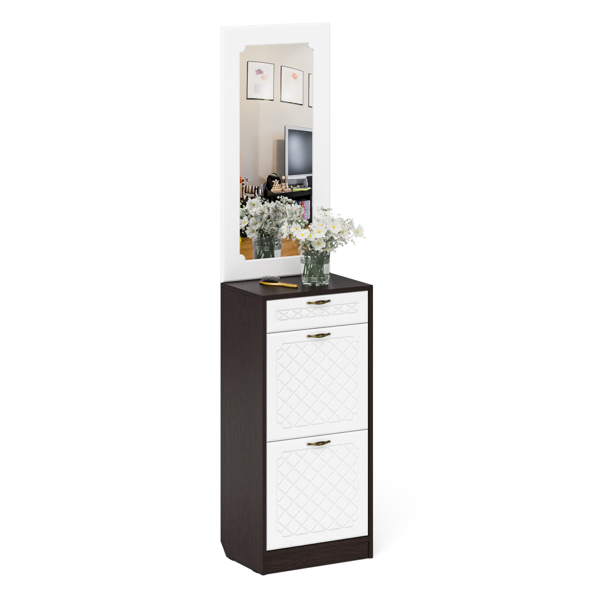 Отзывы о Столплит Тумба для обуви 2 секции с зеркалом П-6 МДФ фрезеровка ромб Белый/Венге