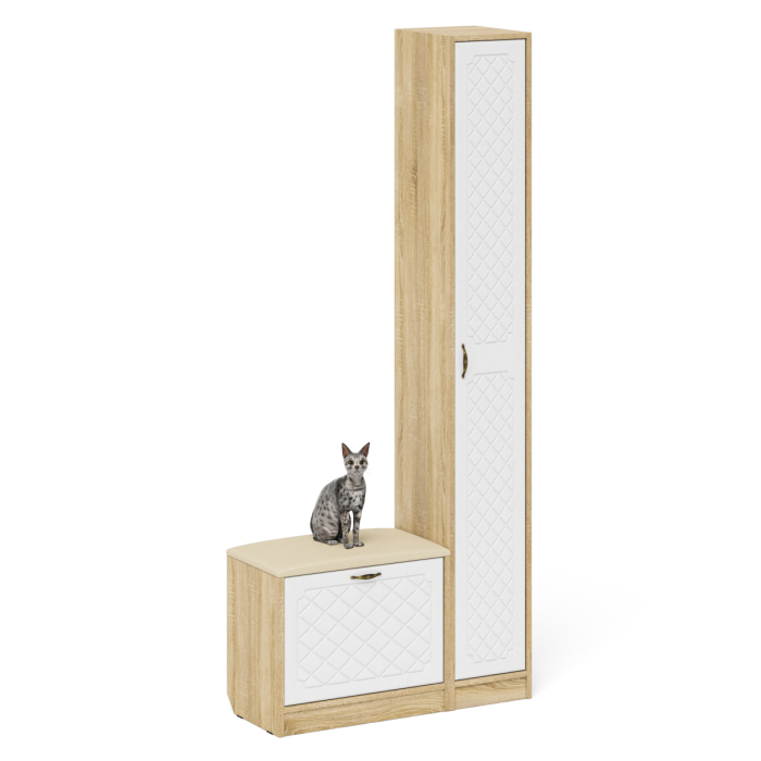 Отзывы о Столплит Обувница с мягким сиденьем и пеналом П-6 МДФ фрезеровка ромб Белое дерево/дуб сонома