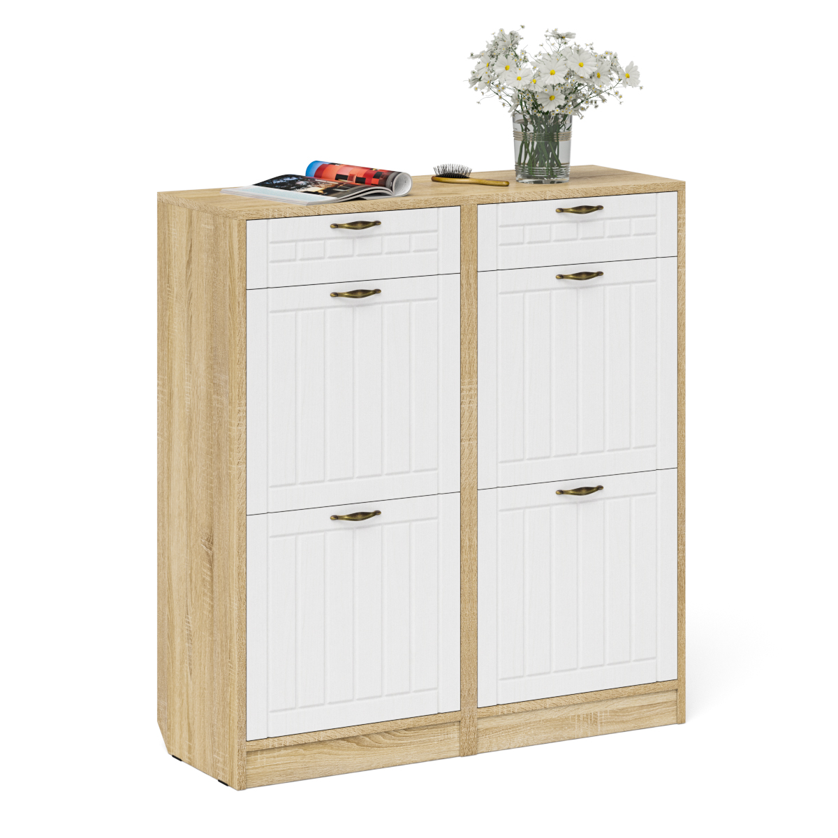 Отзывы о Столплит Две тумбы для обуви 2 секции с выдвижным ящиком МДФ фрезеровка прованс Белое дерево/дуб сонома