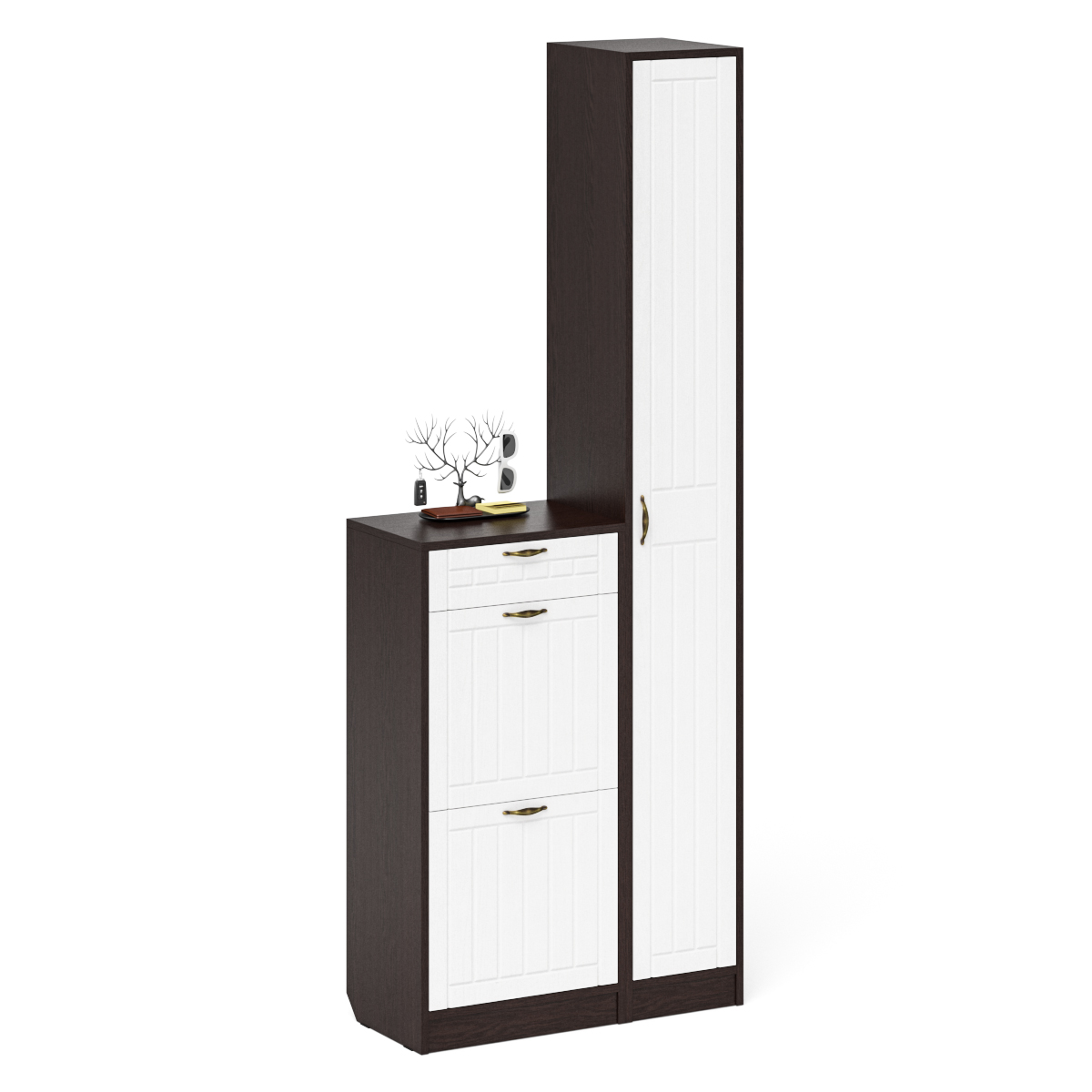 Отзывы о Столплит Тумба для обуви в прихожую с пеналом П-6 МДФ фрезеровка прованс Белый/Венге