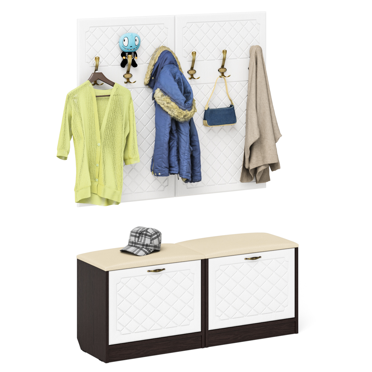 Отзывы о Столплит Две обувницы с мягким сиденьем с двумя вешалками для одежды П-6 МДФ фрезеровка ромб Белый/Венге