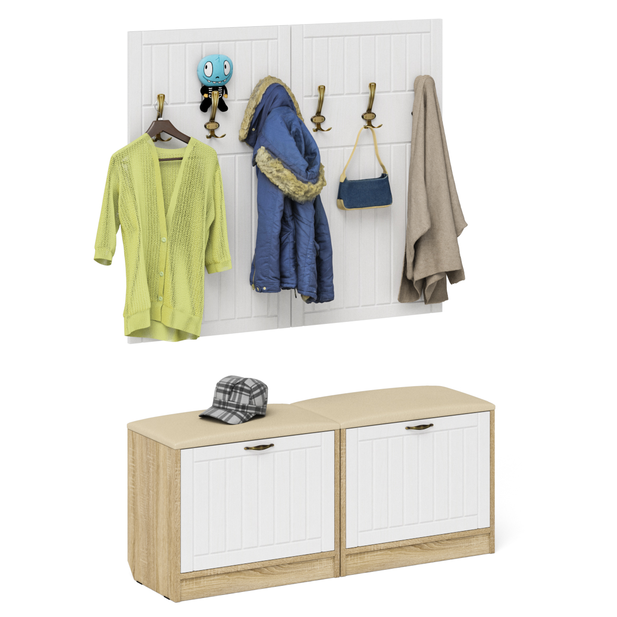 Отзывы о Столплит Две обувницы с мягким сиденьем с двумя вешалками для одежды П-6 МДФ фрезеровка прованс Белое дерево/дуб сонома