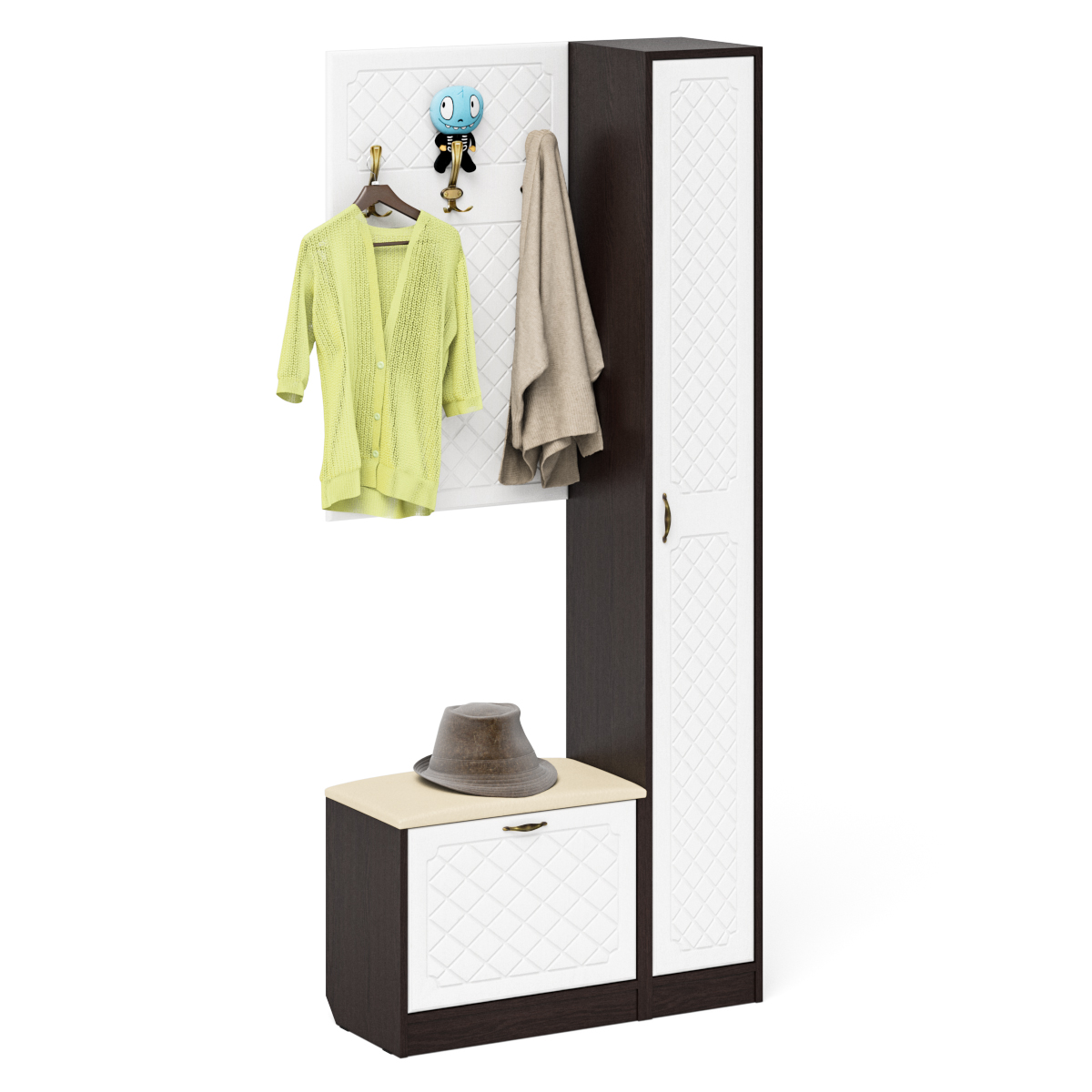 Отзывы о Столплит Обувница с мягким сиденьем вешалка с крючками и пенал П-6 МДФ фрезеровка ромб Белый/Венге