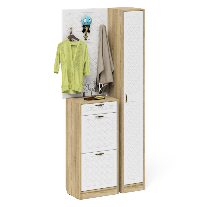 Отзывы о Столплит Тумба для обуви высокая с вешалкой и пеналом П-6 № 24 МДФ фрезеровка ромб Белое дерево/дуб сонома