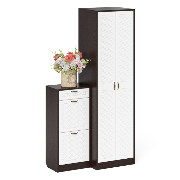 Отзывы о Столплит Шкаф с тумбой для обуви 2 секции П-6 № 16 МДФ фрезеровка ромб Белый/Венге