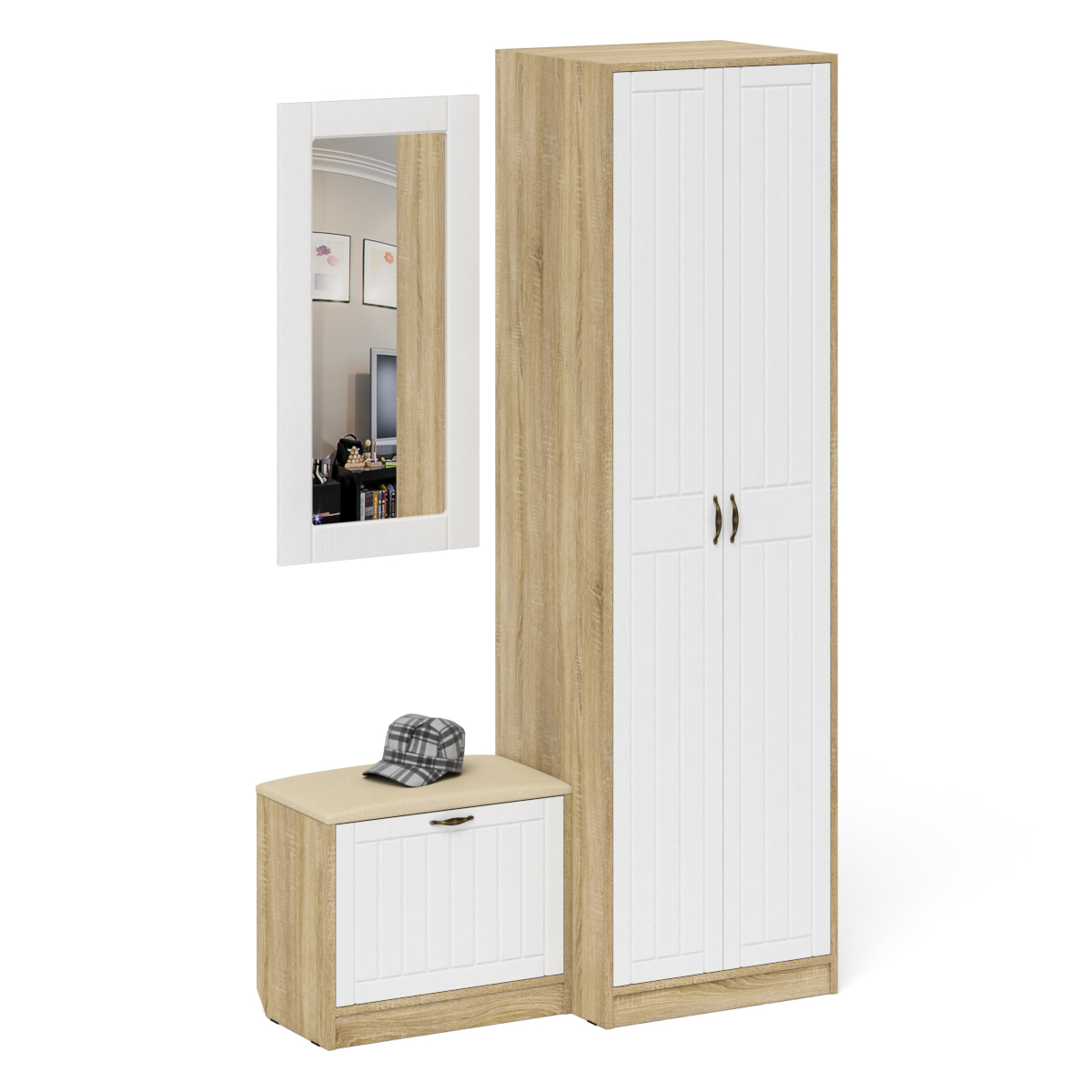 Отзывы о Столплит Шкаф две двери с обувницей и зеркалом П-6 № 11 МДФ фрезеровка прованс Белое дерево/дуб сонома