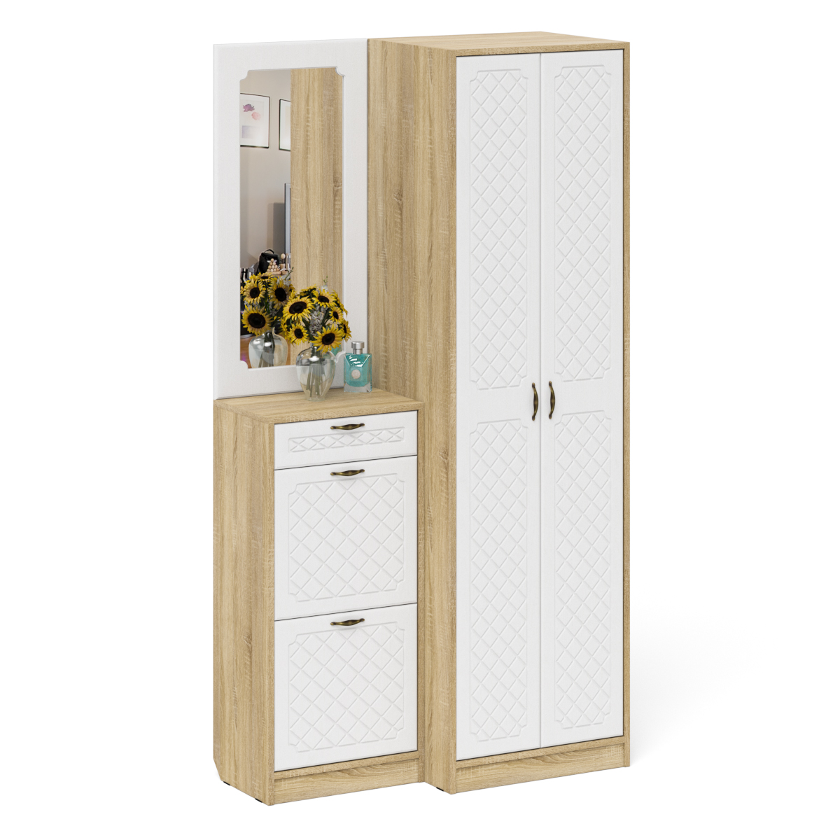 Отзывы о Столплит Зеркало для прихожей с обувницей и шкафом П-6 № 17 МДФ фрезеровка ромб Белое дерево/дуб сонома
