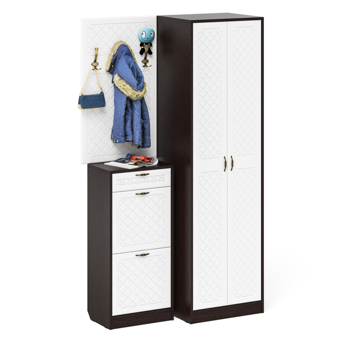 Отзывы о Столплит Вешалка с крючками с обувницей с ящиком и шкаф П-6 № 18 МДФ фрезеровка ромб Белый/Венге