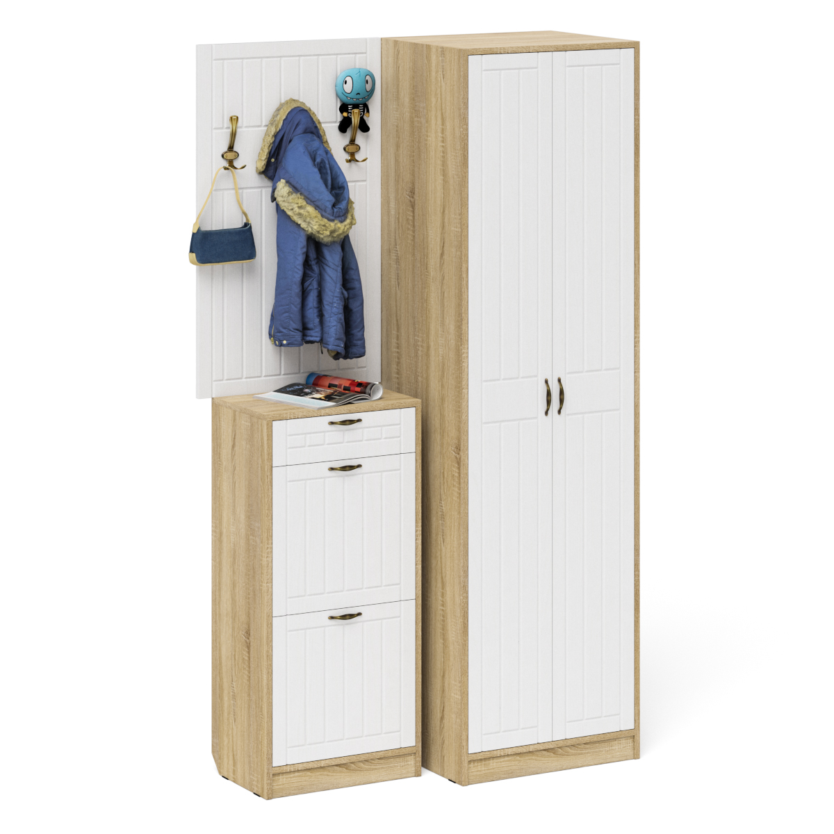 Отзывы о Столплит Вешалка с крючками с обувницей с ящиком и шкаф П-6 № 18 МДФ фрезеровка прованс Белое дерево/дуб сонома