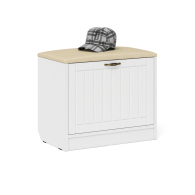 Комплектация состоит из шкафа для одежды и пенала объединенных в единый блок и тумбы с сиденьем. Классический шкаф за распашными дверками которого расположены антресольная полка для головных уборов, горизонтальная штанга и нижняя ниша для обуви. Классический узкий пенал, за распашной дверью которого расположены 4 полки. Сторону открывания двери Вы определяете при сборке, что расширяет возможности удобной меблировки прихожей. Компактная маленькая обувница без полок за откидной дверкой. За откидной дверцей достаточно места для нескольких пар обуви. Обувница оборудована мягким сиденьем - ее можно использовать в качестве банкетки с комфортом обуваясь перед выходом. Для фиксации откидных фасадов используется газлифт мебельный. Максимальная нагрузка составляет 5 кг. Ручки в виде скоб выполнены из металла в цвете бронза. Двери закреплены на четырёхшарнирных петлях. Фасады выполнены из МДФ односторонней белой 16 мм. и покрыта плёнкой ПВХ 0,3 мм. белое дерево. Декоративная фрезеровка Прованс служит отличным дополнением к общему светлому тону фасада. Корпуса выполнены из ламинированной ДСП 16 мм., которая имеет гигиенический сертификат Е1 и относится к самой безопасной группе ДСП. Торцы деталей облицованы кромкой ПВХ 2 мм. и 0,4 мм., что улучшает эстетический вид и продлевает срок службы обувнице. На опорах мебели используются пластиковые подпятники, сохраняющие Ваше напольное покрытие от повреждений. Поставляются шкаф с пеналом и обувницей с сиденьем П-6 № 25 в разобранном виде в надёжной упаковке, с комплектом сборочной фурнитуры и инструкцией по сборке. Изображения шкафа с пеналом и обувницей с сиденьем П-6 № 25 Вы можете найти выше в начале страницы.