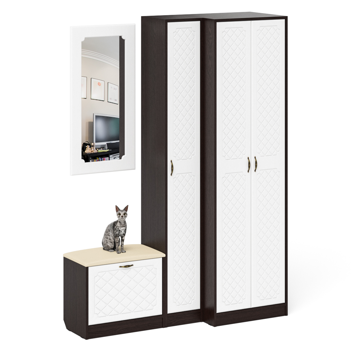Отзывы о Столплит Тумба для обуви с сидением с зеркалом и пенал со шкафом П-6 № 26 МДФ фрезеровка ромб Белый/Венге