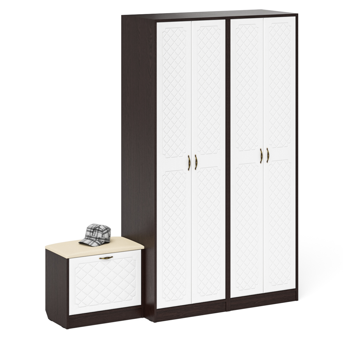 Отзывы о Столплит Два шкафа с дверками и обувница с сиденьем П-6 № 07 МДФ фрезеровка ромб Белый/Венге