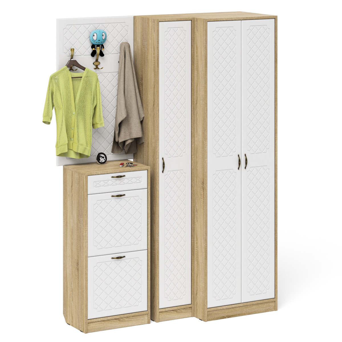 Отзывы о Столплит Мебель в прихожую П-6 № 30 МДФ фрезеровка ромб Белое дерево/дуб сонома