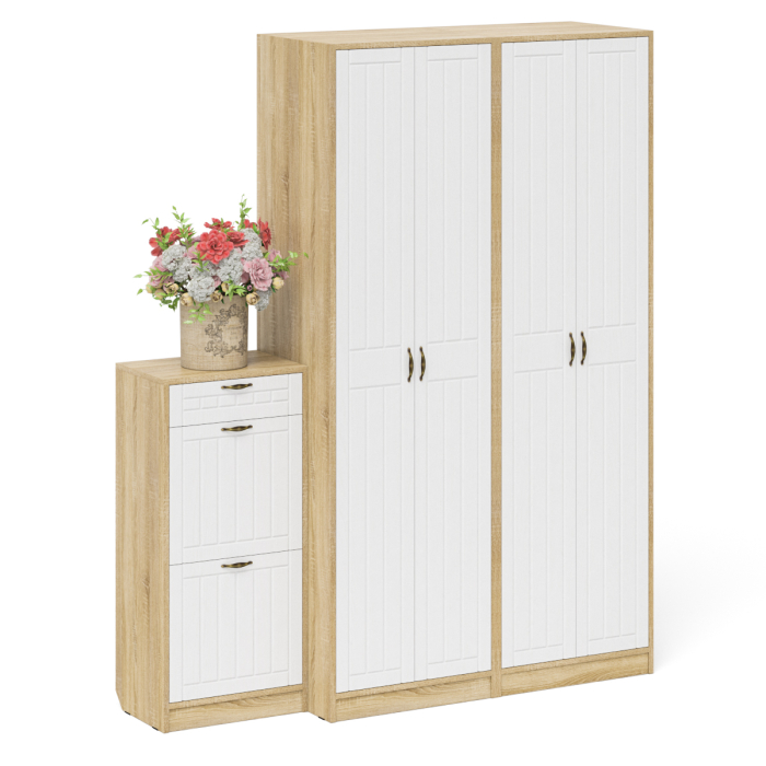 Отзывы о Столплит Тумба для обуви две секции и два шкафа в прихожую П-6 № 13 МДФ фрезеровка прованс Белое дерево/дуб сонома