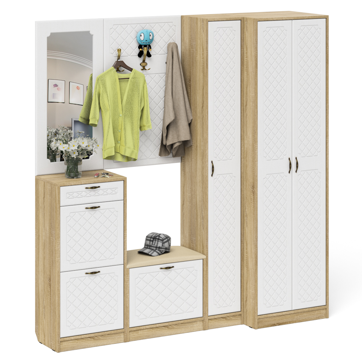 Отзывы о Столплит Полный набор мебели для прихожей П-6 компоновка № 31 МДФ фрезеровка ромб Белое дерево/дуб сонома