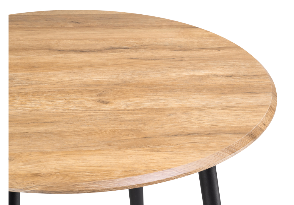 Толщина столешницы: 2,2 см. Материал каркаса - Металл; Материал ножек - Металл; Материал столешницы - МДФ; Цвет столешницы - Дуб вотан; Ширина - 90; Высота - 76; Длина - 90.