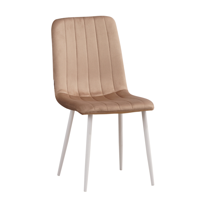 Стул обеденный в мягкой обивке ВЕЛЮР. Сидение и спинка выполнены из многослойной фанеры. Каркас выполен из металла крашеный в белый цвет.