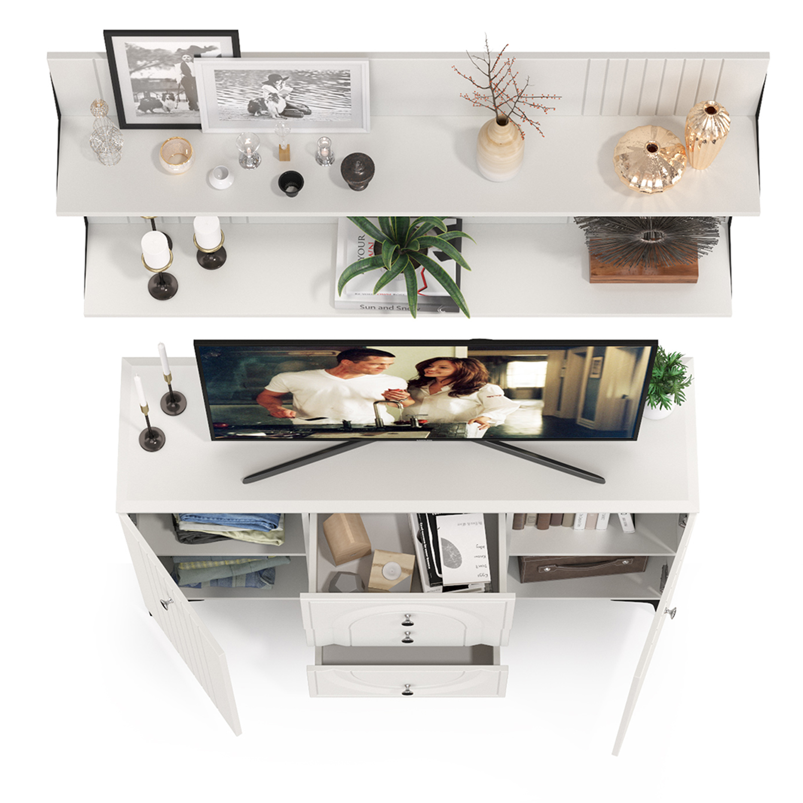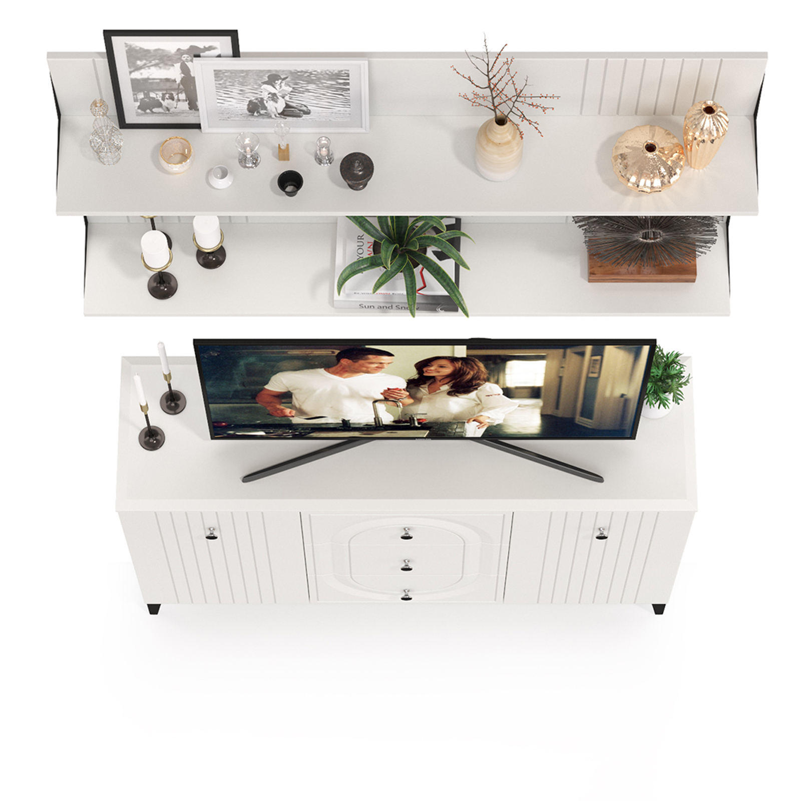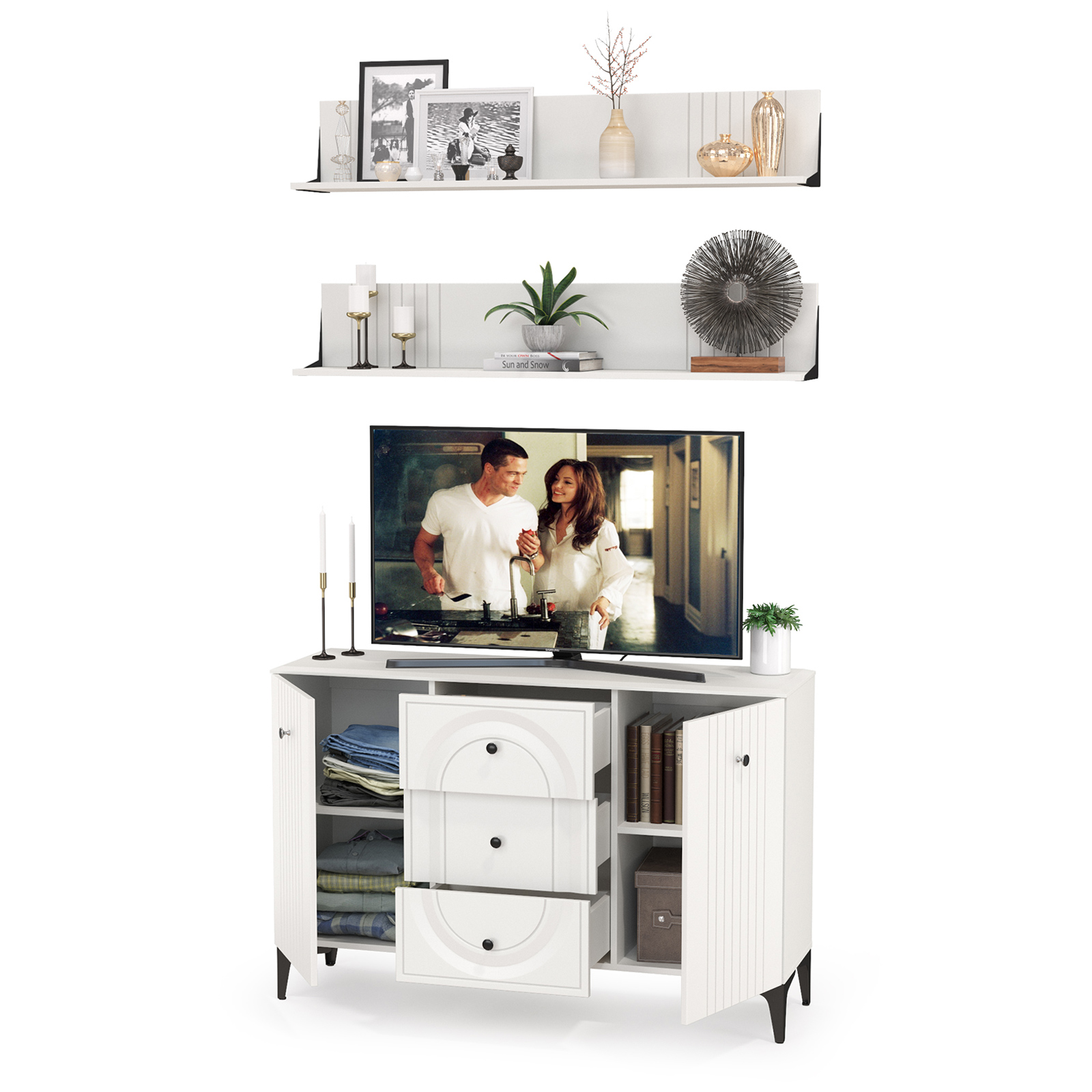 ТВ-тумба-Комод Валенсия 13.309 с двумя навесными полками № 89 - стильный минимальный набор для светлой гостиной в популярном стиле ар-деко.