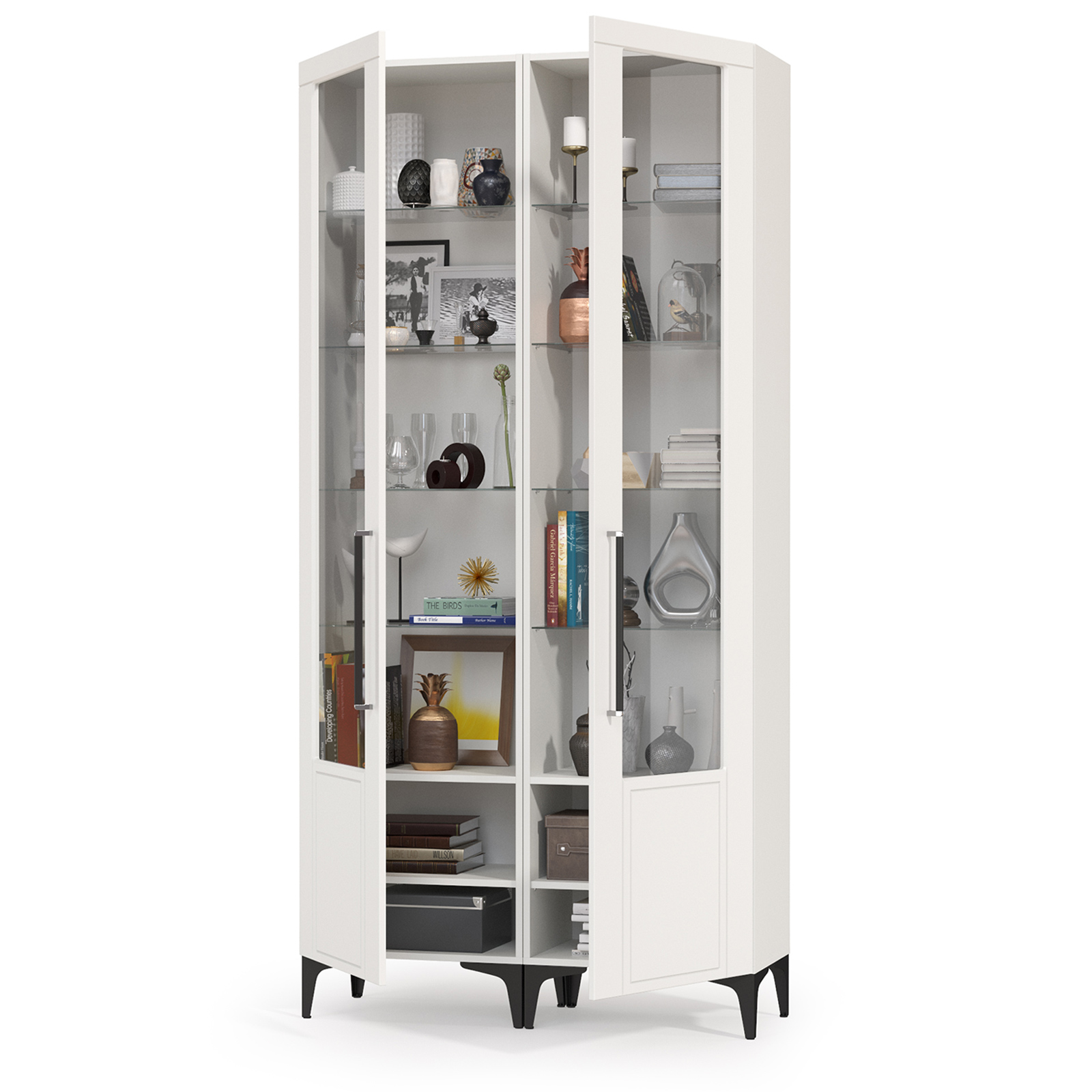 Два пенала со стеклом в гостиную Валенсия № 129 - стильный набор для светлой гостиной в популярном стиле ар-деко.