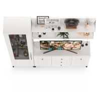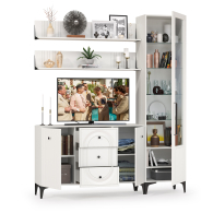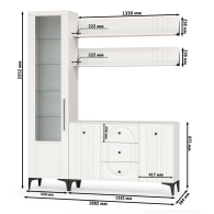 TV-тумба-комод с двумя навесными полками и пенал со стеклом в гостиную Валенсия № 94 - стильный набор для светлой гостиной в популярном стиле ар-деко.