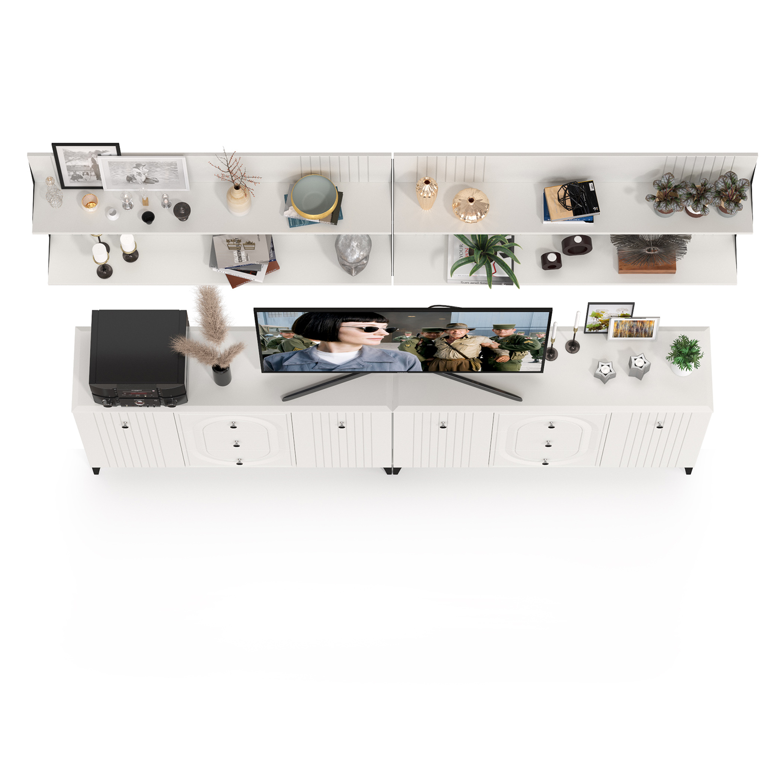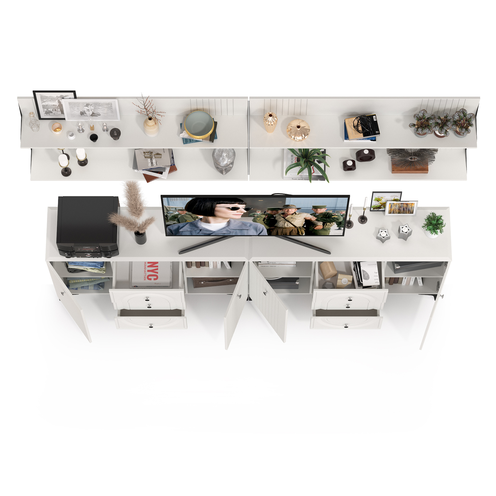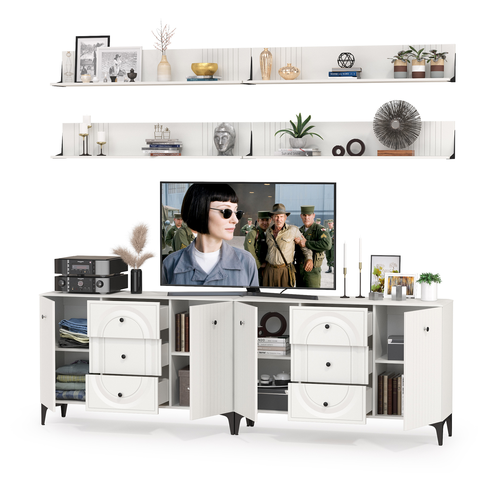 Два широких комода Валенсия № 91 и четыре навесных полки - стильный набор для светлой гостиной в популярном стиле ар-деко.