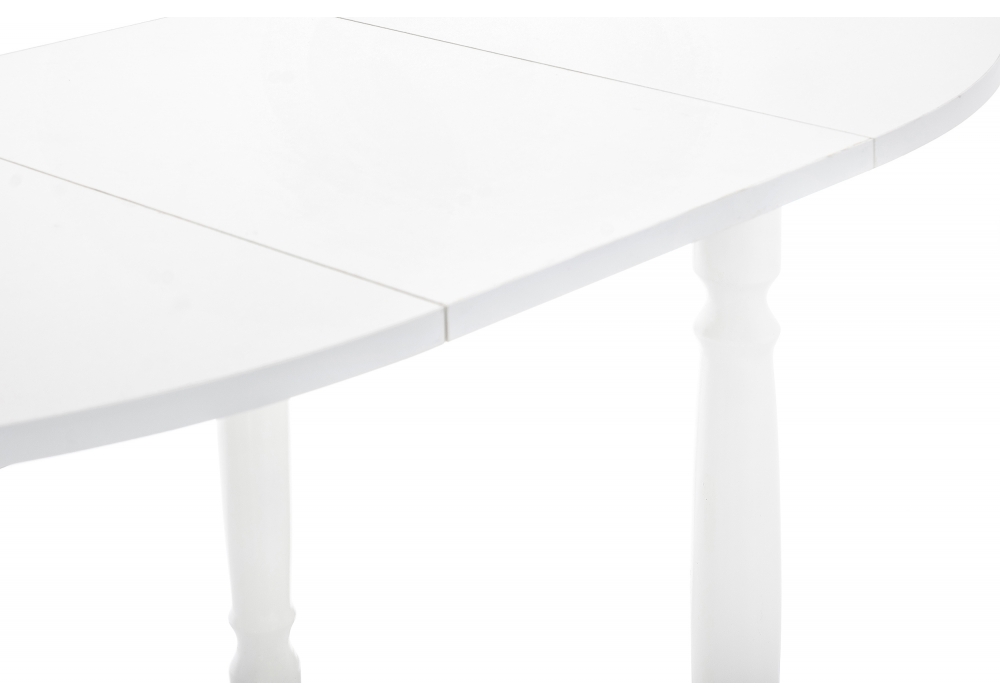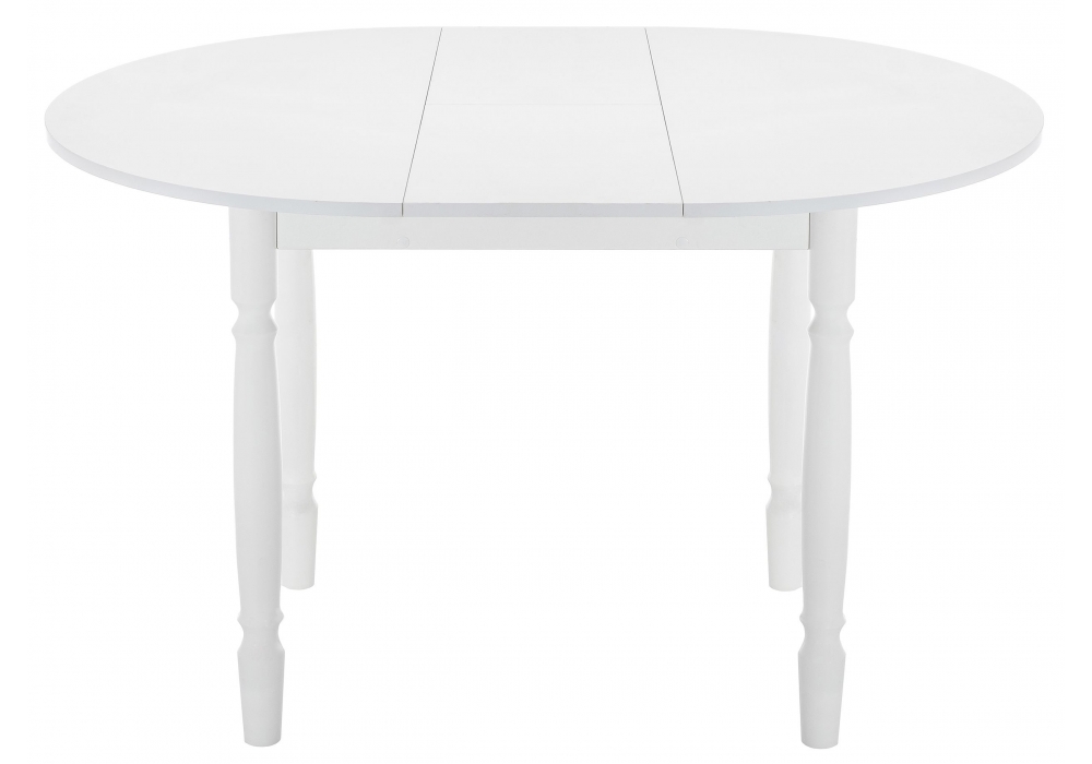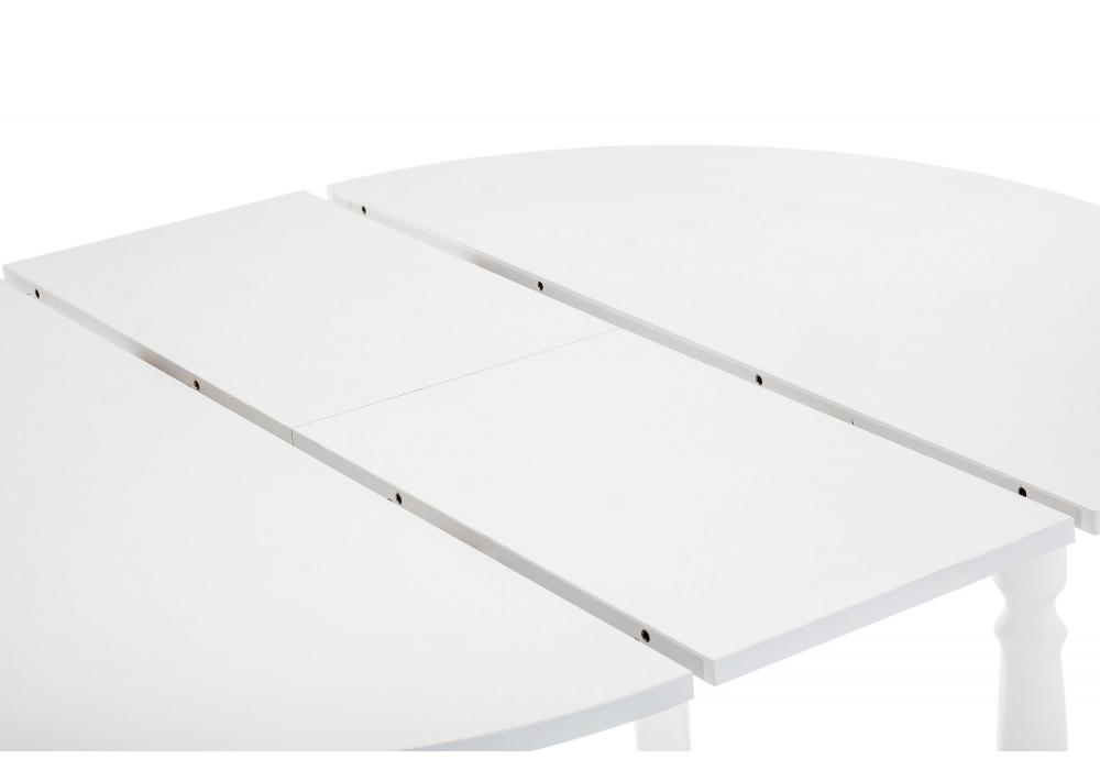 Расстояние между ножек (в разложенном виде) - 60 см. Материал каркаса - Массив дерева; Материал ножек - Массив дерева; Материал столешницы - ЛДСП; Цвет каркаса - Белый; Цвет ножек - Белый; Цвет столешницы - Белый; Цвет подстолья - Белый; Ширина - 90; Высота - 73; Длина стола в разложенном виде - 120; Длина - 90.